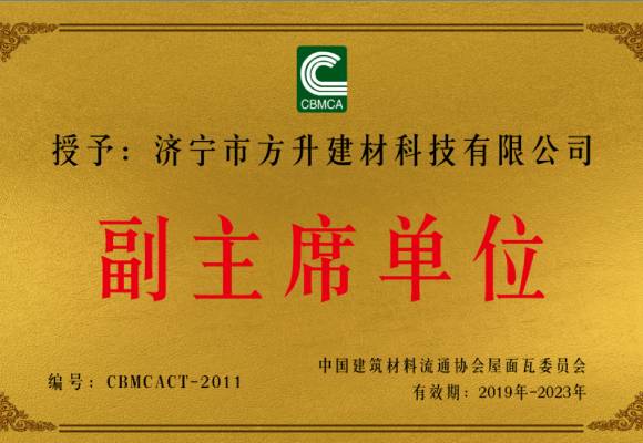 2019年7月公司被中國(guó).建筑材料流通協(xié)會(huì)屋面瓦第二次委員會(huì)授予副主席單位,公司總經(jīng)理常明皎被聘為中國(guó)建筑材料流通協(xié)會(huì)屋面瓦委員會(huì)副主席。